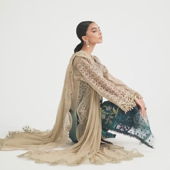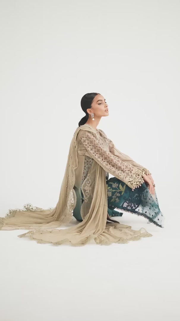 Printed & Embroidered Lawn Center Panel With 3D Flowers & Pearls