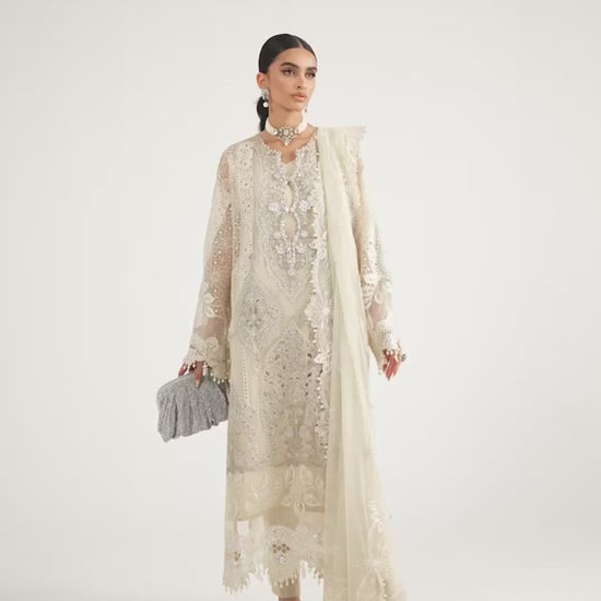 Embroidered Organza Center Panel With 3D Flowers, Pearls & Diamantes
