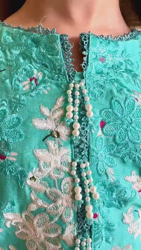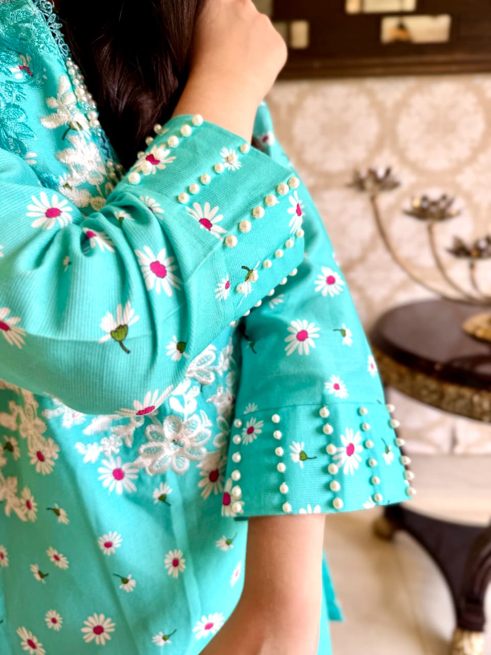 Step into elegance with Blue Serenity, a soothing turquoise outfit adorned with delicate white floral motifs. The beautifully detailed neckline adds a graceful charm, while the soft fabric ensures comfort and style. Ideal for festive occasions and casual gatherings, this piece is a timeless blend of freshness and sophistication. 🌿🌸