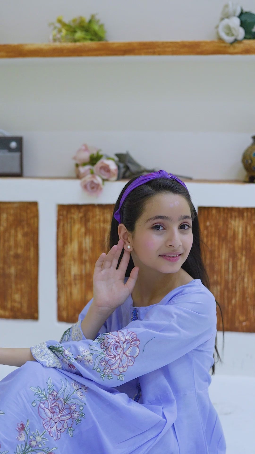 A soft light purple dress with delicate embroidery on the neckline and sleeves. Graceful and charming — perfect for festive moments and warm days.