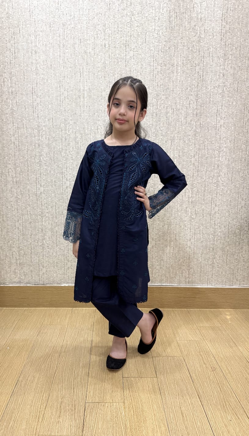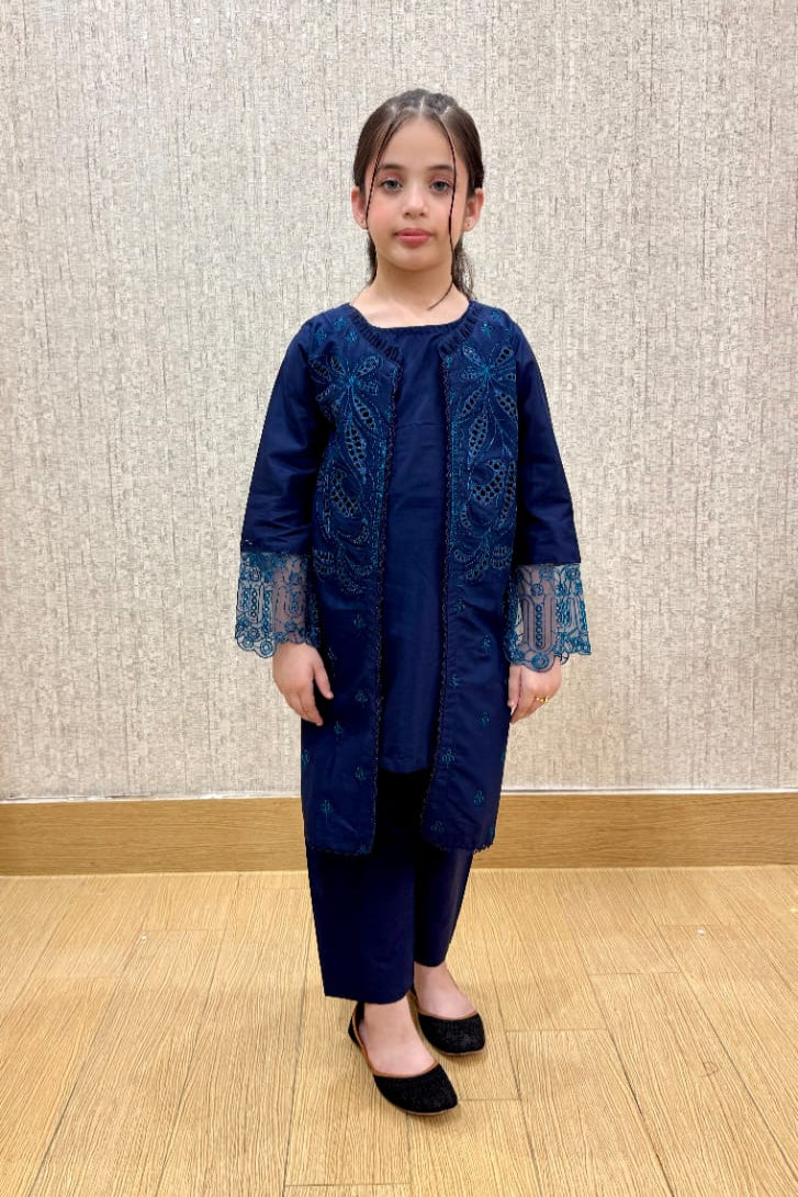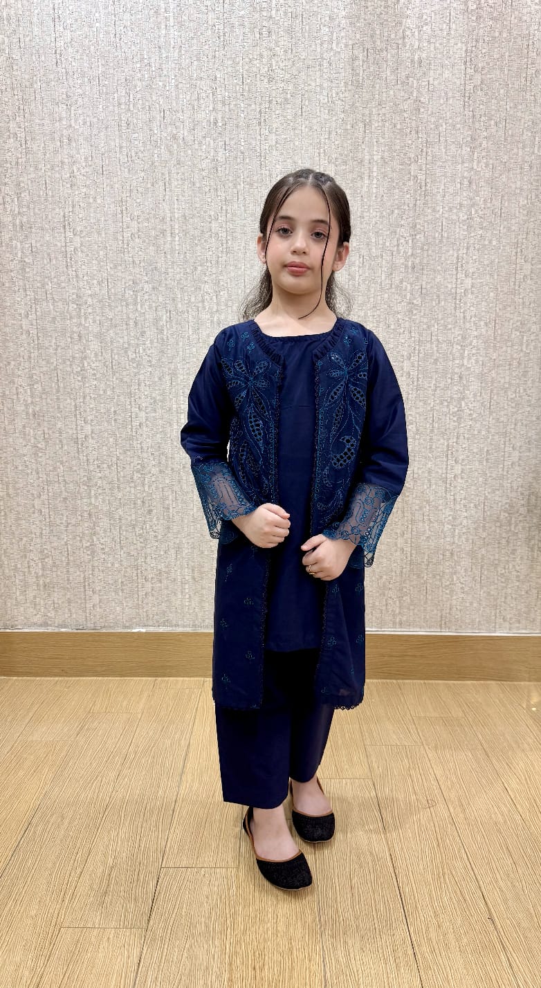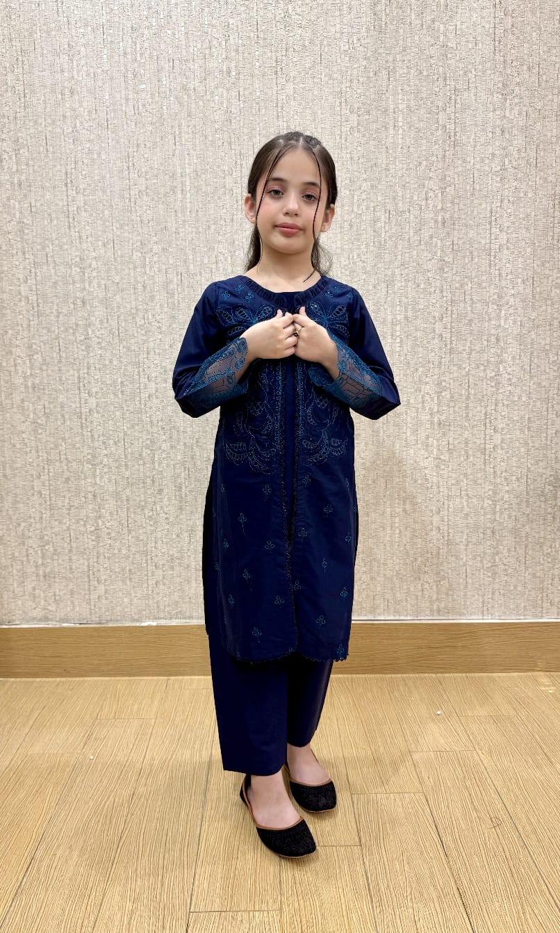 Aqua Bloom is a refreshing water blue suit, adorned with soft embroidery that adds a touch of charm and grace. Crafted from breathable cotton fabric, it offers a light and airy feel — perfect for sunny days and casual gatherings. Its soothing color and comfy fit make it a beautiful choice for little girls.