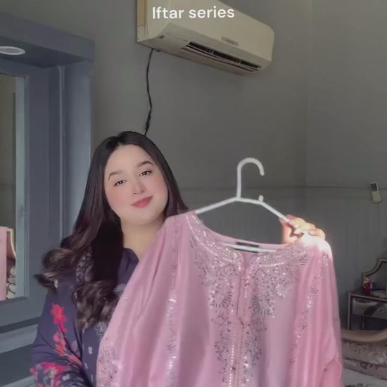 Light pink Lawn with tone-on-tone embroidery, creating a soft and romantic vibe. Perfect for day wear or casual events.